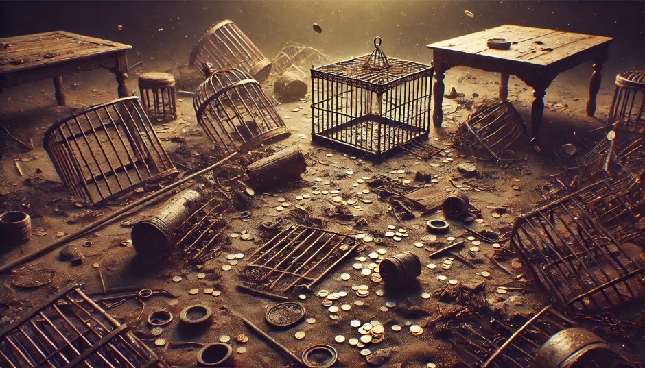 In the temple, Jesus found people selling cows, sheep and doves and found money exchangers sitting around. He made a rope whip and sent them out of the temple with the sheep and oxen. He tipped money exchanger’s coins out and tipped over the tables.